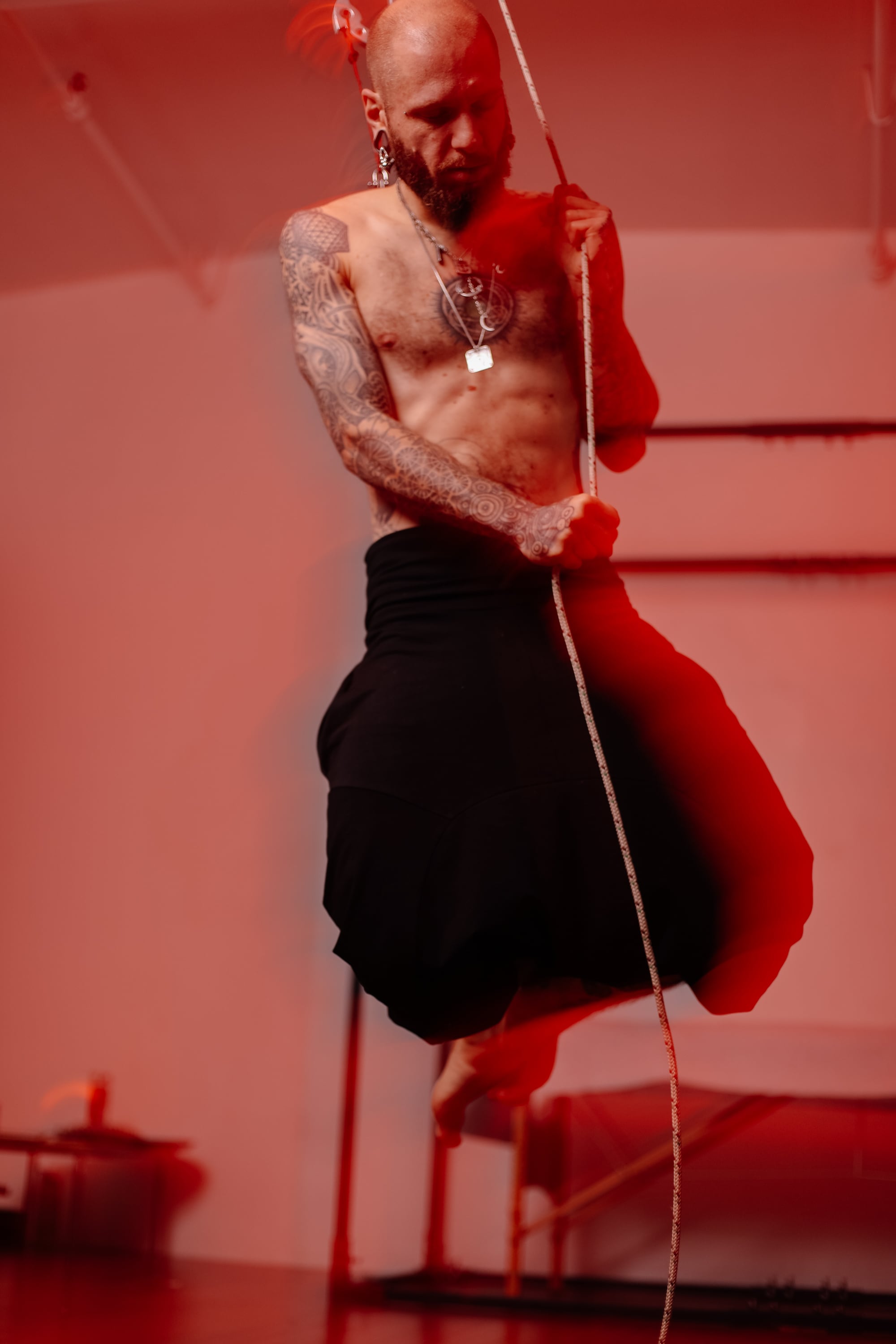All of my installation work combines elements I create myself, from welded metal to hand-tensioned rope. All of my live installations are collaborations with living, breathing humans.